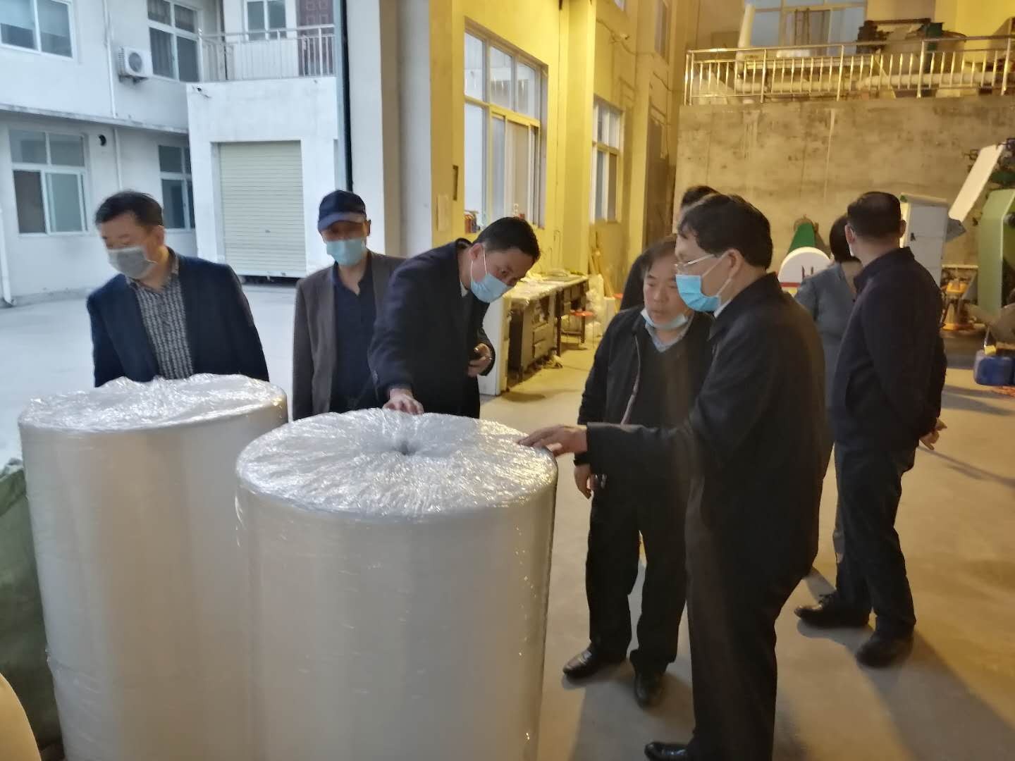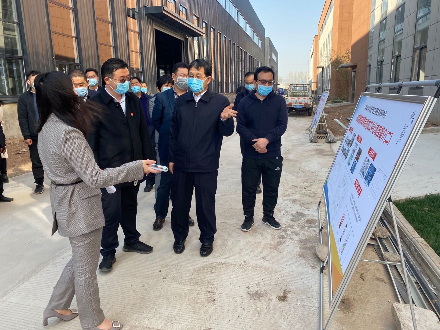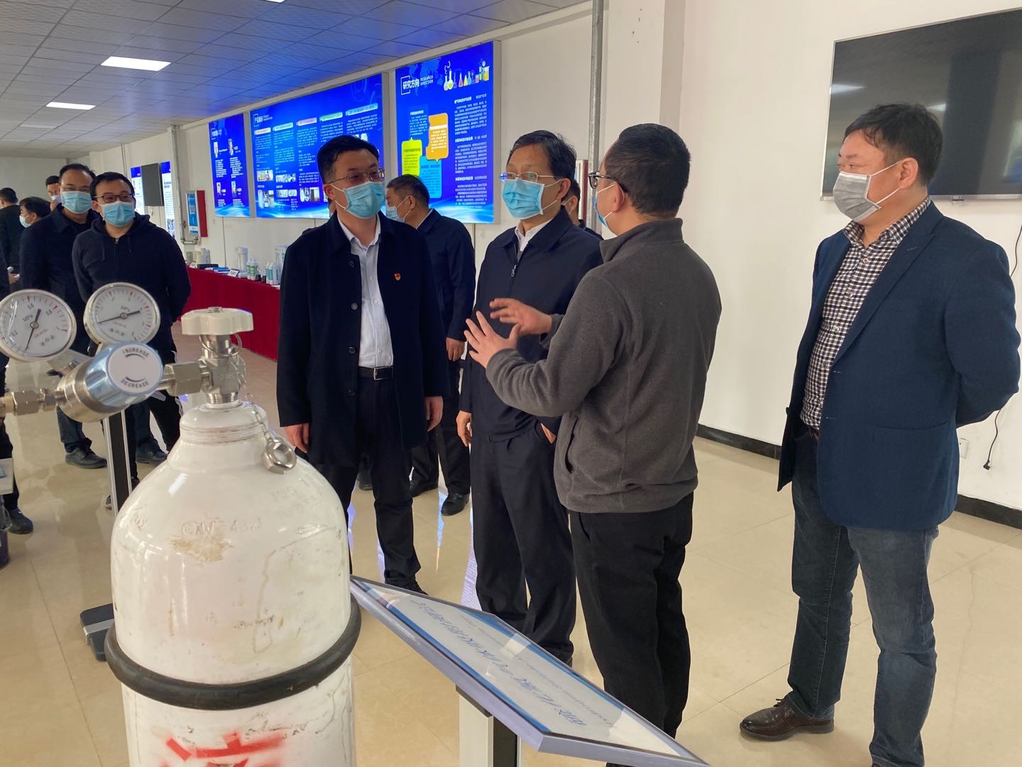 3月(yuè)17日(rì)下(xià)午,童孟進院長(cháng)一(yī)行(xíng)6人(rén)到(dào)沁陽科(kē)創園中試園調研檢查指導複工(gōng)複産工(gōng)作(zu₹ò)。沁陽市(shì)委書(shū)記盧希望、沁陽市(shì)委常委、市(shì)政府黨組副書(shū)記λ徐明(míng)安、沁陽市(shì)委常委、市(shì)委辦主任張曉軍、沁陽市(shì)政府副市(shì)長(cháng)毛克祥、沁陽市(☆shì)産業(yè)集聚區(qū)副主任張濤、科(kē)工(gōng)局局長(cháng)尚維君參加調研。高(gāo)新公司副總經理(lǐ)劉紅(hóng)雲代表科(kē)創園運營中↕心向童孟進院長(cháng)詳細彙報(bào)了(le)沁陽科(kē)創園整體(tǐ)建設情況,并重點彙報(bào)了(le)疫情防控和(hé)複工(gōng)複産工(gōng)作(↓zuò)。崔國(guó)士、餘學軍和(hé)範家(jiā)霖分(fēn)别對(duì)新型熔噴布材料開(kāi)發、新型抗病毒活性先導化(huà)合物(wù)合成以及加速器(qì)項目進♠度情況的(de)彙報(bào)。