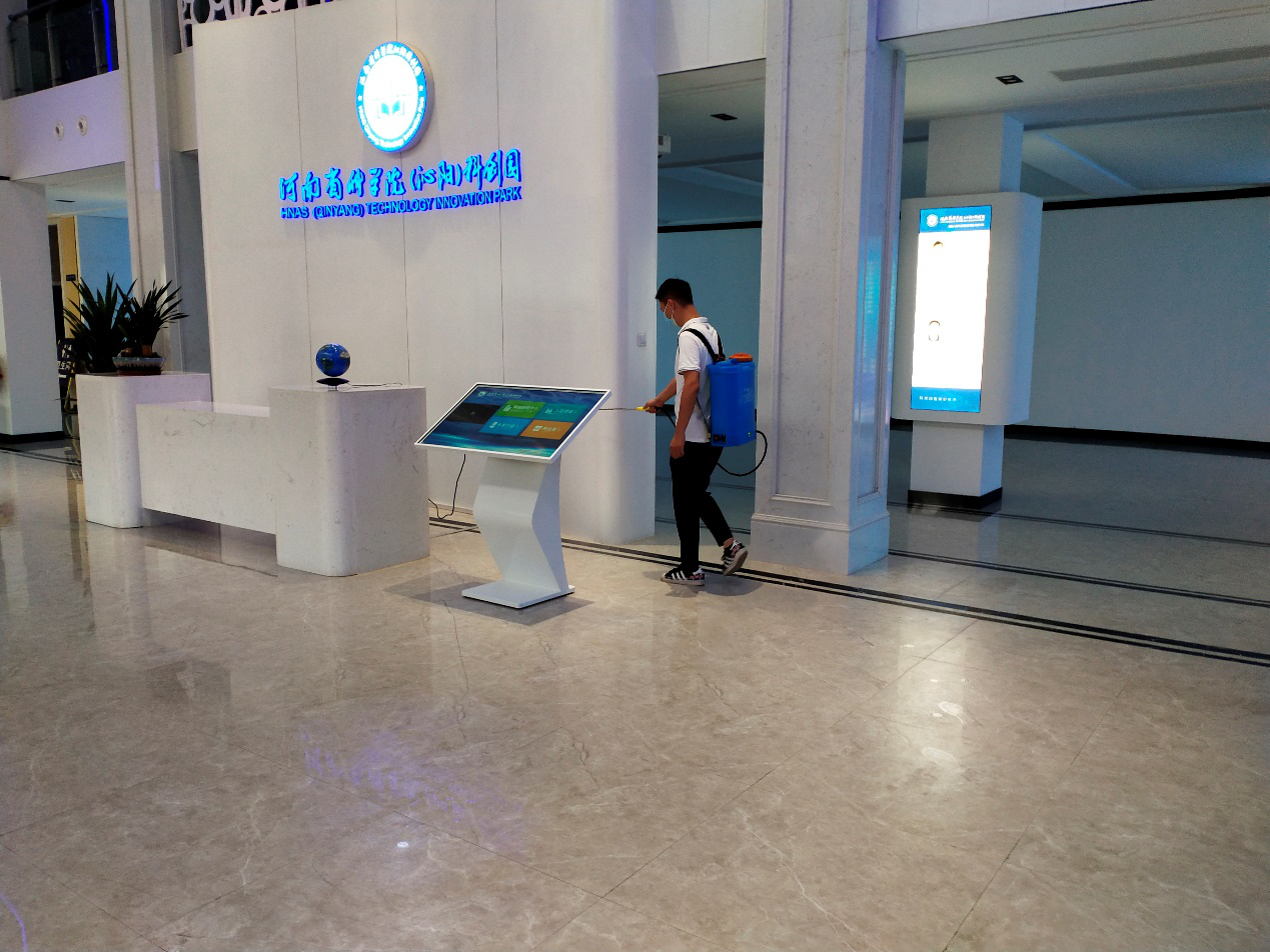 疫情發生(shēng)後,科(kē)創園所有(yǒu)工(gōng)作(zuò)人(rén∑)員(yuán)第一(yī)時(shí)間(jiān)進行(xíng)核酸檢測,返回沁陽,投入到(dào)疫情防控工(gōng)作(zuò)的(de)第一(yī)線,通(→tōng)過園區(qū)微(wēi)信工(gōng)作(zuò)平台實時(shí)傳達沁陽市(shì)疫情防控公告,為(wèi)各個(gè)團隊發放(fàng)β了(le)醫(yī)用(yòng)口罩,組織園區(qū)物(wù)業(yè)、入駐團隊采購(gòu)儲備防疫消殺物(wù)資,加大(dà±)對(duì)園區(qū)辦公樓、實驗室、食堂等區(qū)域的(de)消殺工(gōng)作(zuò);在上(shàng)下(xià)班高(gāo)峰期,科(kē)創園運營中心工(δgōng)作(zuò)人(rén)員(yuán)積極開(kāi)展門(mén)崗志(zhì)願服務活動,對(duì)進出園區(qū)人(rén)員(yuán)進行(xíng)查驗行(xíng)程碼、健康碼,體(tǐ)溫登記,并現(xiàn)場(chǎng)協調實際問(wèn)題;并建立入駐團隊疫情防控&ld✘quo;十個(gè)嚴格”工(gōng)作(zuò)台賬,加強對(duì)園區(qū)的(de)日(rì)常巡檢∑,做(zuò)到(dào)“四個(gè)排查”,即排查有(yǒu)無中高(gāo)風(fēng)險地★(dì)區(qū)或中高(gāo)風(fēng)險地(dì)區(qū)接觸史人(rén)員(yuán),排查有(yǒu)無漏報(bào)少(shǎo)報(bào)人(rén)員(yuán),δ排查疫苗接種情況,排查核酸檢測情況,每日(rì)報(bào)送集聚區(qū)和(hé)沁園辦。針對(duì)園區(qū)人(rén)員(y∞uán)較多(duō)的(de)情況,為(wèi)進一(yī)步減少(shǎo)聚集,降低(dī)風(fēng)險,科(kē)創園積極與沁陽市(shì)産業(yè)集聚區(qū☆)管委會(huì)等單位協調,在科(kē)創園組織園區(qū)全員(yuán)核酸檢測及鄭州返園人(rén)員(yuáαn)的(de)第三次檢測,保障園區(qū)工(gōng)作(zuò)人(rén)員(yuán)的(de)健康安全。同時(shí)與所在社區(qū)積極溝通>(tōng)協調,保障入駐團隊人(rén)員(yuán)的(de)生(shēng)産生(shēng)活秩序。
