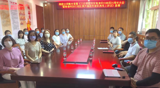 2022年(nián)7月(yuè)1日(rì)上(shàng)午,慶祝香港回歸祖國(guó)25周年(nián)大(dà)會(huì)暨香港特别行(xíng)政區(qū)第六♣屆政府就(jiù)職典禮在香港會(huì)展中心隆重舉行(xíng)。中共中央總書(shū)記、國(guó)家( jiā)主席、中央軍委主席習(xí)近(jìn)平出席。高(gāo)新公司組織全體(tǐ)幹部職工(gōng)集中觀看(kàn)現(xiàn)場(chǎng)直播。
